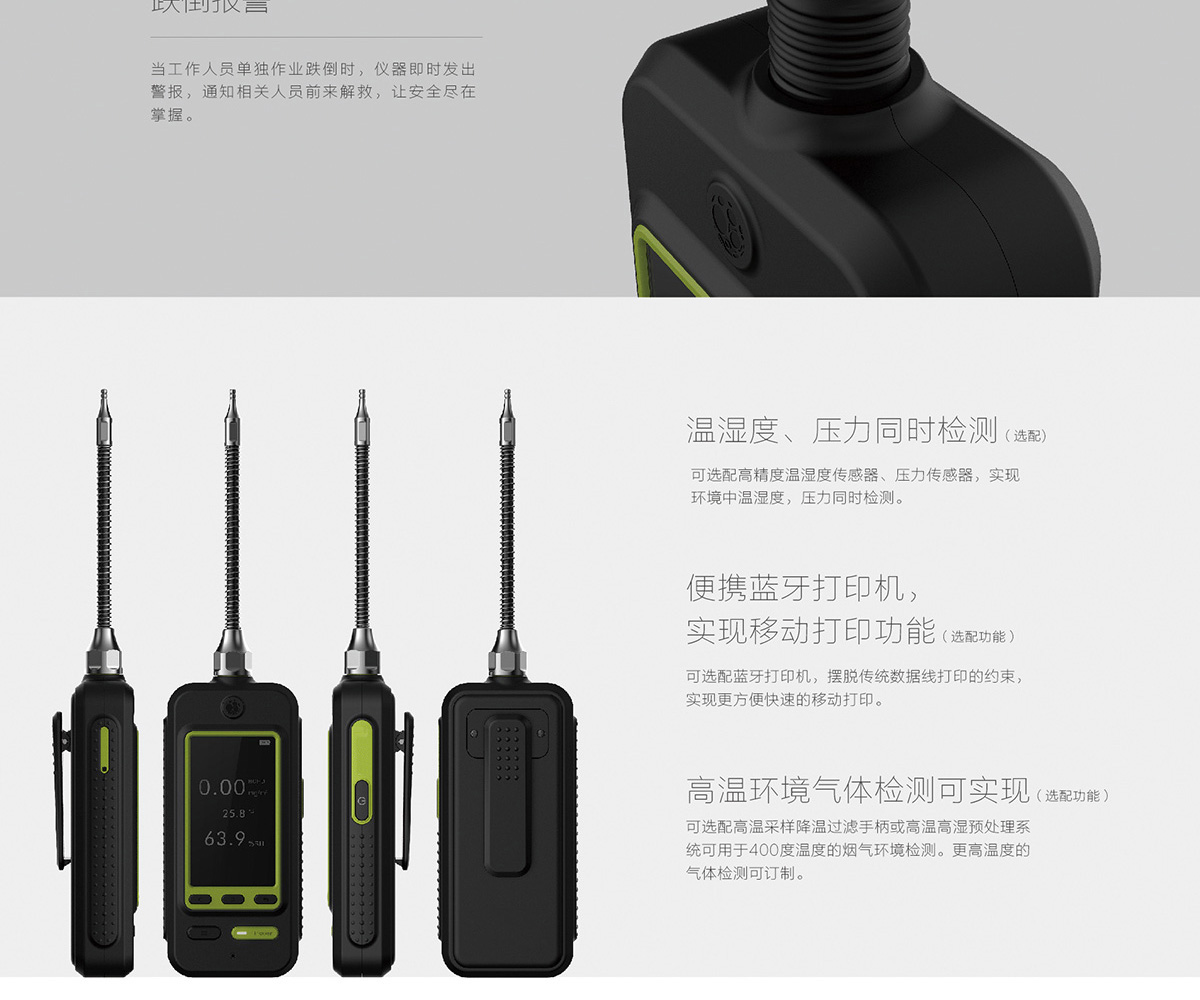 環(huán)境溫度:-20℃~+50℃(選配煙氣采樣探槍,最高可檢測(cè)1200℃的煙氣濃度)