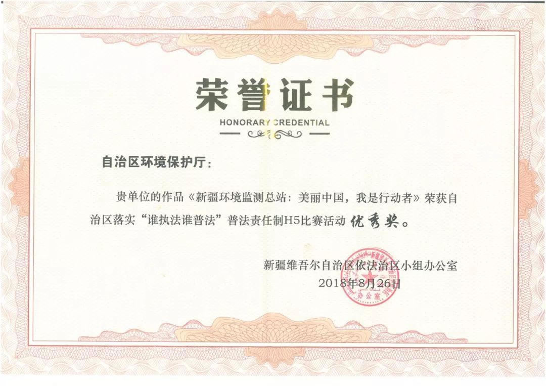《美麗中國,我是行動者》H5作品榮獲普法責(zé)任制活動比賽優(yōu)秀獎。 |