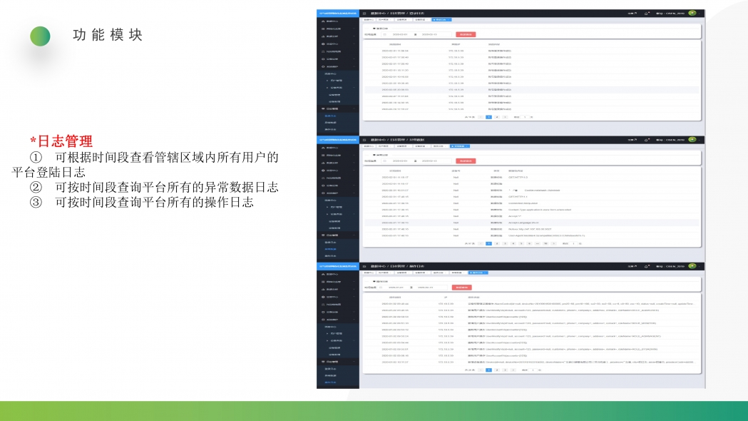 ① 可根據(jù)時間段查看管轄區(qū)域內(nèi)所有用戶的平臺登陸日志