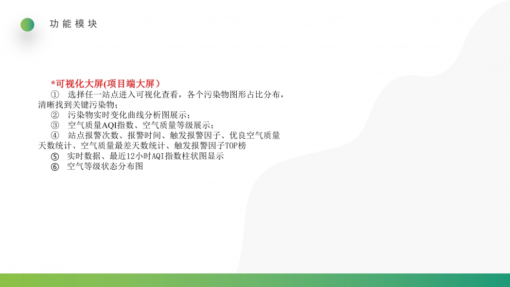 ③ 空氣質(zhì)量AQI指數(shù)、空氣質(zhì)量等級展示;