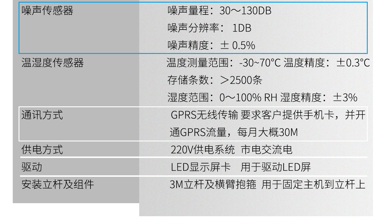 | 噪聲傳感器 | AIFLI-Z | 噪聲量程:30~130db 噪聲分辨率: 1db 噪聲精度:± 0.5% |
