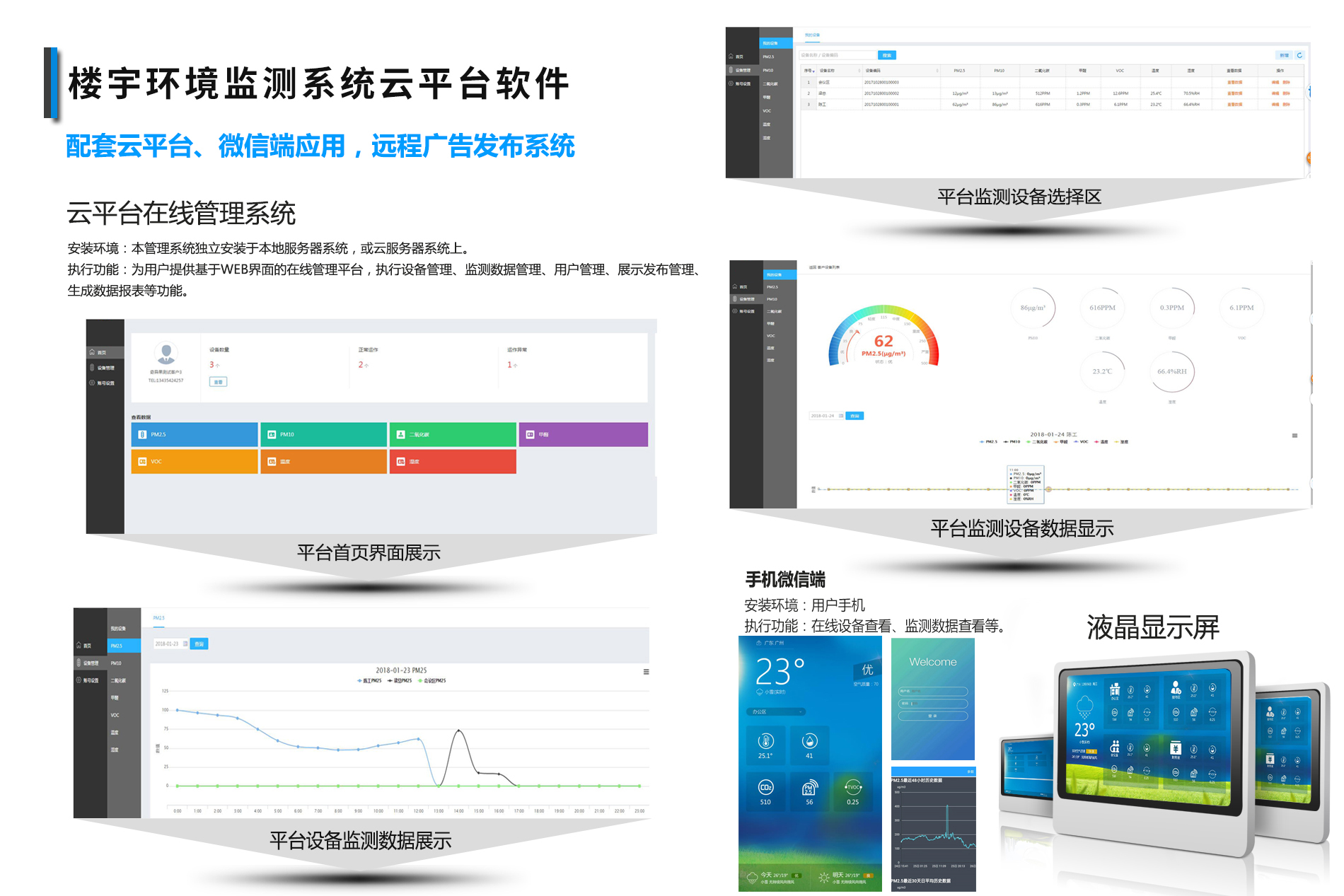 室內空氣質量監測系統設備室內綜合環境監測終端是一款工業級、多監測項、高精度空氣質量監測系統終端,可支持測量的指標包括:顆粒物(PM2 …