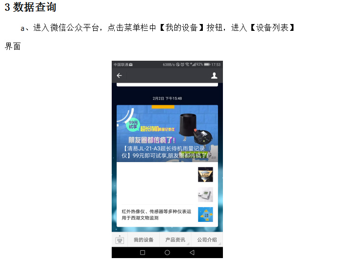 通過手機微信掃描設備(測量儀)的二維碼,即可隨時隨地快速瀏覽與查詢數據。