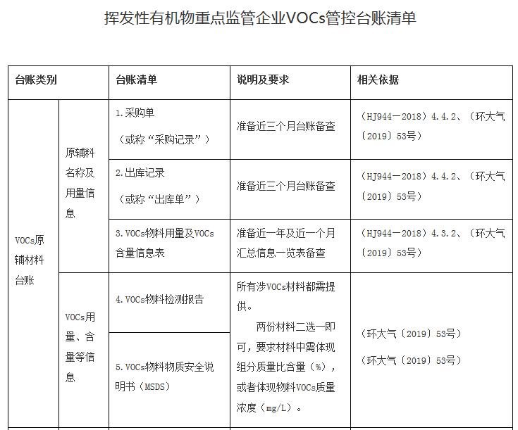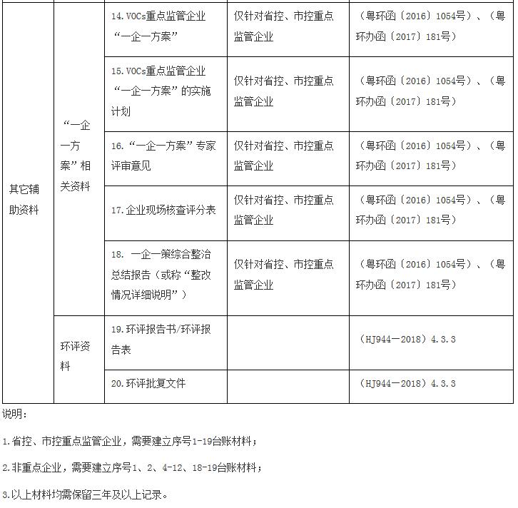 廣東省生態環境廳辦公室關于印發揮發性有機物重點監管企業VOCs管控臺賬清單的通知