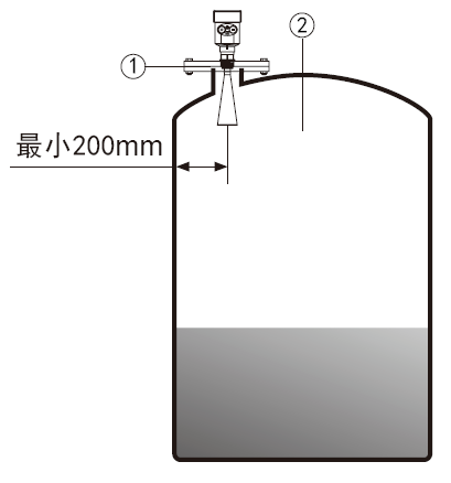 注:距離罐壁最小距離應為200mm。注:①基準面     ②容器中央或對稱軸