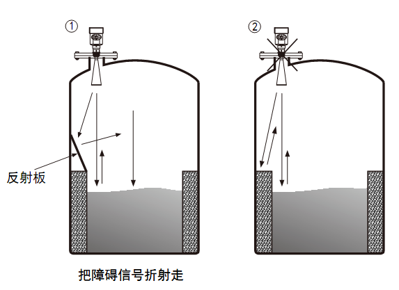 Ø 當罐中有障礙物影響測量時,要加裝反射板才能正常測量。