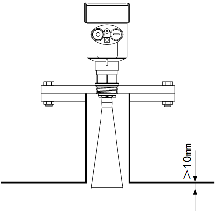 l 接管高度要求: 必須保證天線伸入到罐里至少10mm的距離。