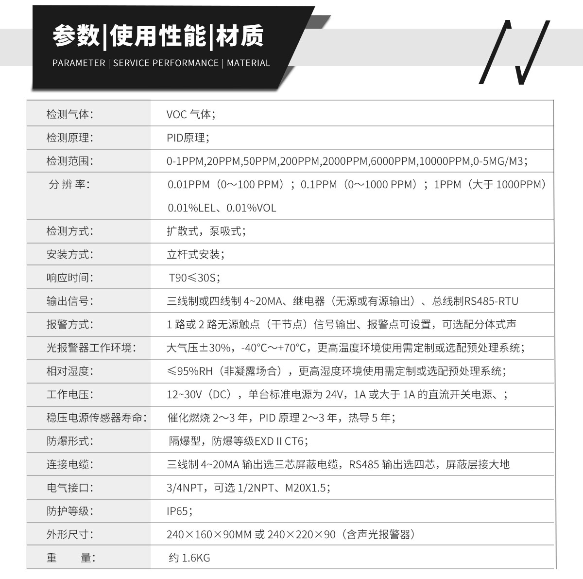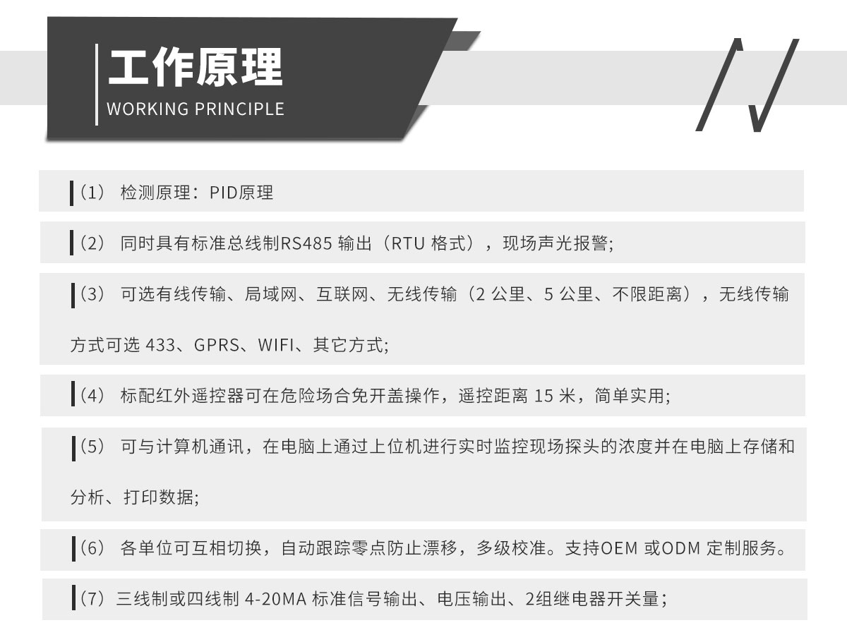 測量范圍 1~50000 檢測原理 催化燃燒、半導(dǎo)體、電化學(xué)、紅外、PID